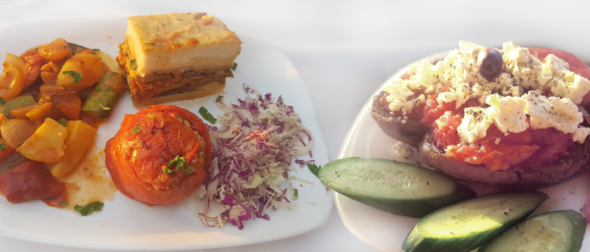 Wir bieten Ihnen frische Speisen nach original kretischen Rezepten, rustikale und schmackhafte Küche